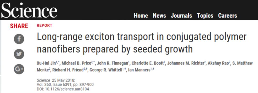 Xu-Hui Jin, Michael B. Price, Ian Manners, Richard H. Friend, George R. Whittell, Ian Manners et al. Long-range exciton transport in conjugated polymer nanofibers prepared by seeded growth. Science 2018, 360, 897-900.